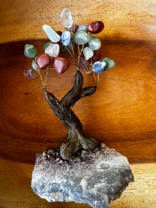Bonsai Gem Tree with Natural Stone and Amethyst Base