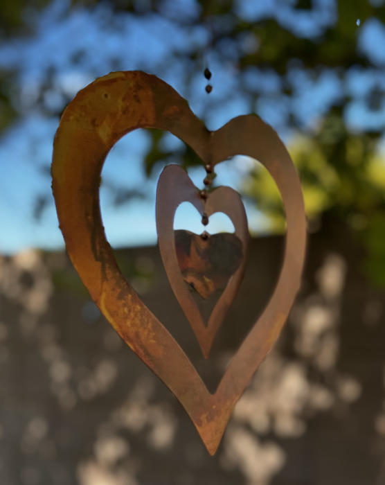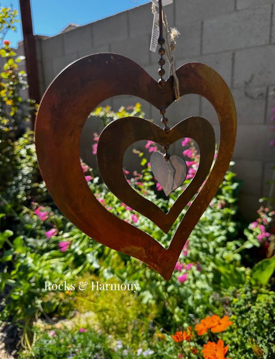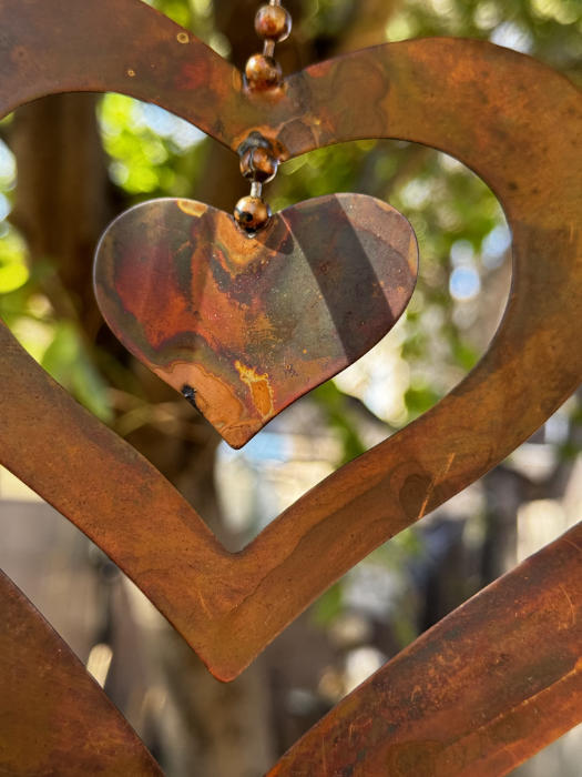 Garden Wind Spinner - Flamed Metal Triple Heart