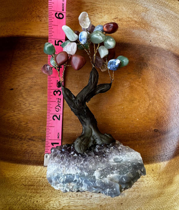 Bonsai Gem Tree with Natural Stone and Amethyst Base
