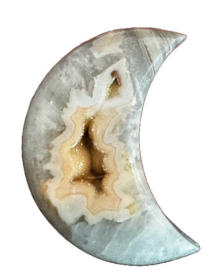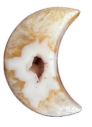 Crafted in a unique and eye-catching moon shape, each piece features stunning agate druzy that adds a touch of elegance and positive vibes to any space. Perfect for meditation and spiritual rituals, this unique piece is a must-have for every crystal lover.